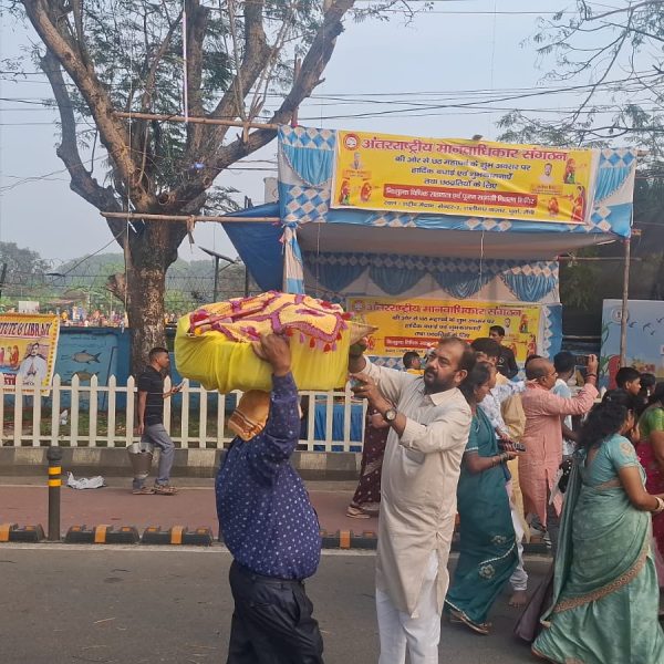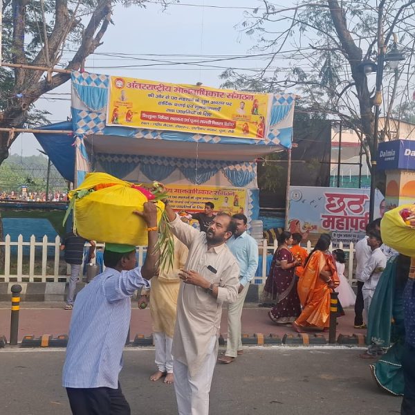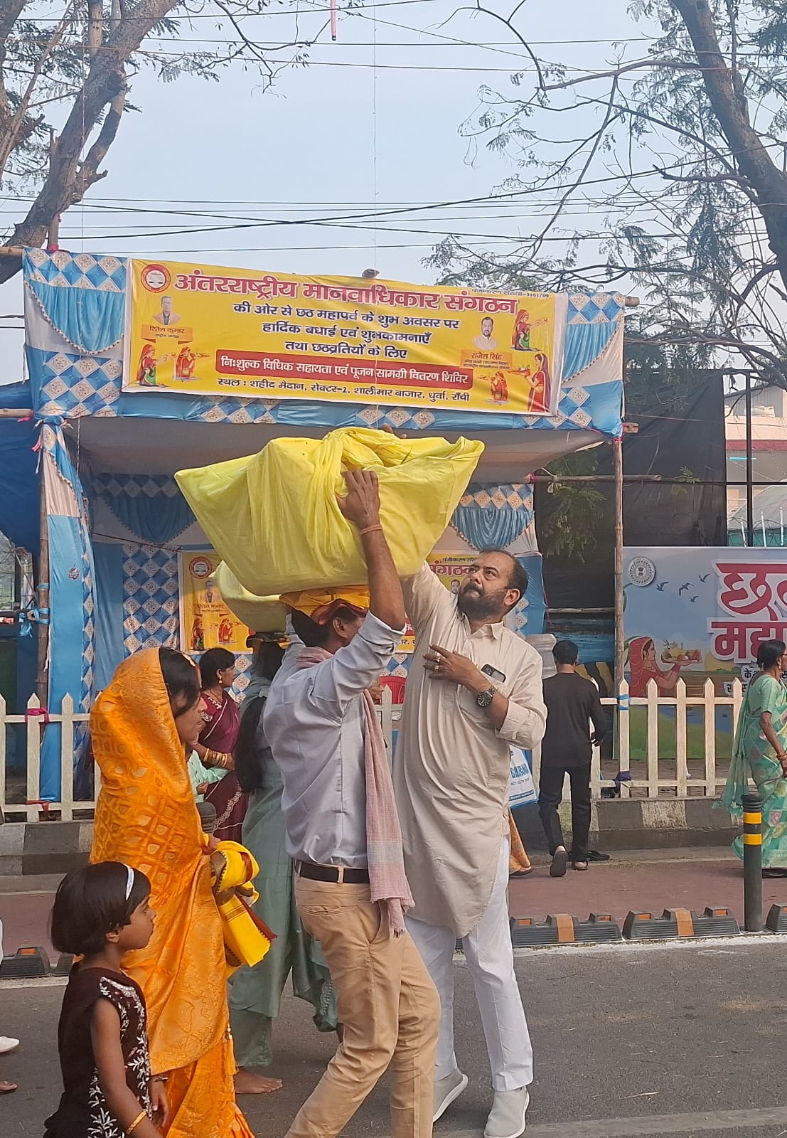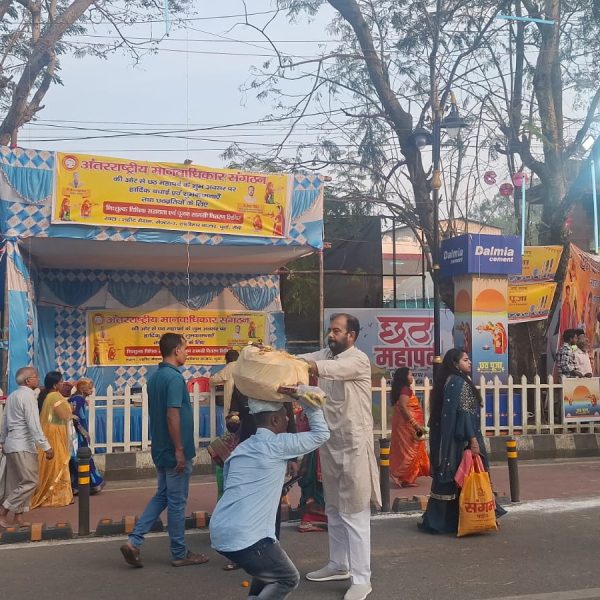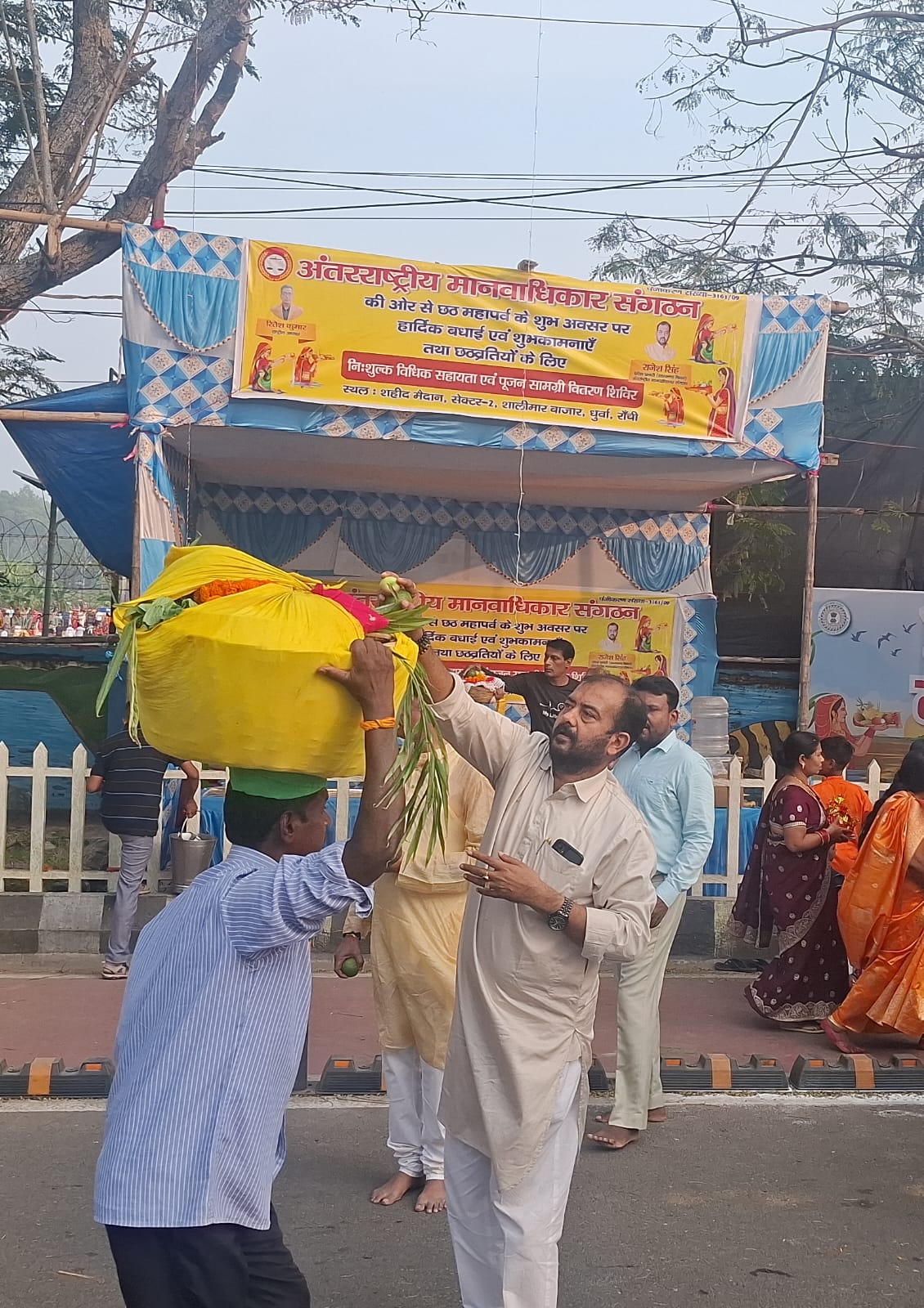 अंतरराष्ट्रीय मानवाधिकार संगठन का दो दिवसीय विधिक सहायता सह प्रसाद वितरण शिविर का आयोजन धुर्वा सेक्टर 2 के शालीमार बाजार में झारखंड के प्रदेश प्रभारी श्री राजेश कुमार सिंह के नेतृत्व में किया गया। इस अवसर पर अंतरराष्ट्रीय मानवाधिकार संगठन के द्वारा छठव्रतियों की सुविधा हेतु संगठन के कार्यकर्ताओं द्वारा प्रसाद वितरण भी किया गया एवं घाट पर आए हुए श्रद्धालुओं के बीच विधिक जागरूकता से संबंधित पंपलेट भी बांटा गया। इस मौके पर राष्ट्रीय अध्यक्ष रितेश कुमार ने सभी श्रद्धालुओं को इस महापर्व की हार्दिक शुभकामना एवं बधाई दी। इस शिविर में गुंजन सिंह, नीरज सिंह, संतोष पाल, मनीष सिंह सहित काफी संख्या में लोग उपस्थित थे।